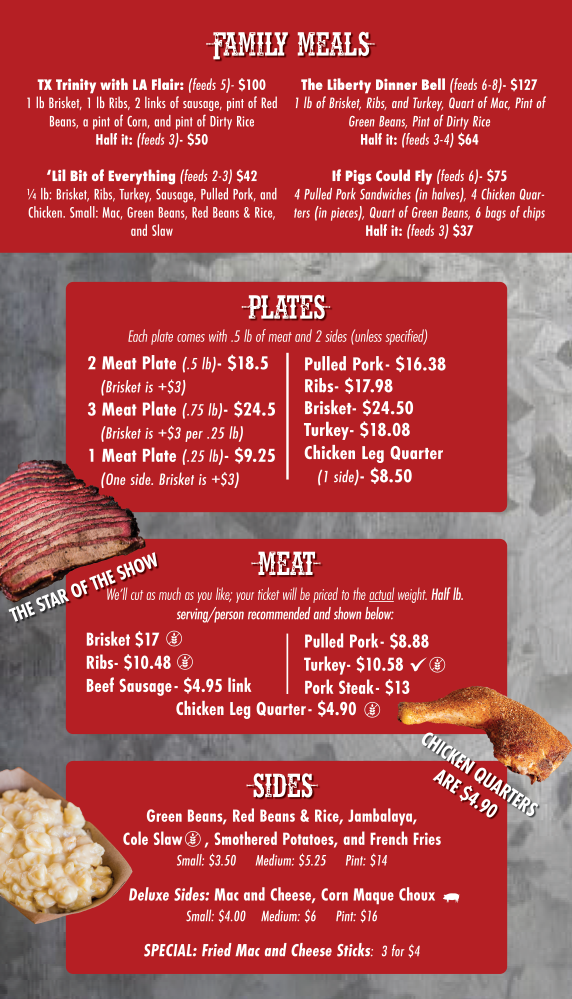 Ordering barbecue should be fun! We make it easy for you to customize which live wood fire smoked meat that you want. You can order meat by the weight and add on any side you wish. Leave room for dessert! Also stay tuned because we are adding new items regularly.